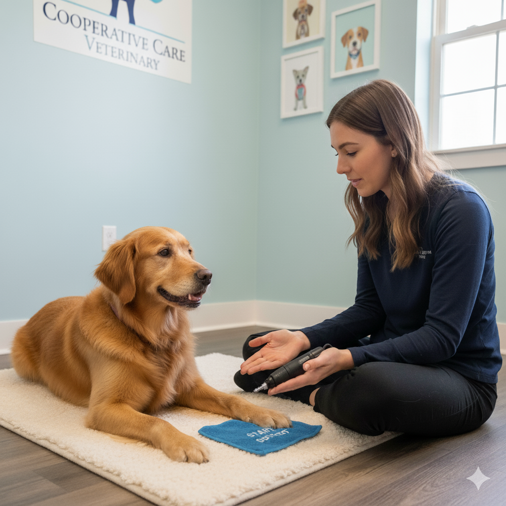 Understanding that cooperative care procedures allow the animal to feel that they have control over what is done to them, helps them feel calm, content and confident as opposed to anxious, stressed and fearful. It’s a trust building exercise where your dog chooses to relinquish control and trust you in various aspects of his life without coercion.